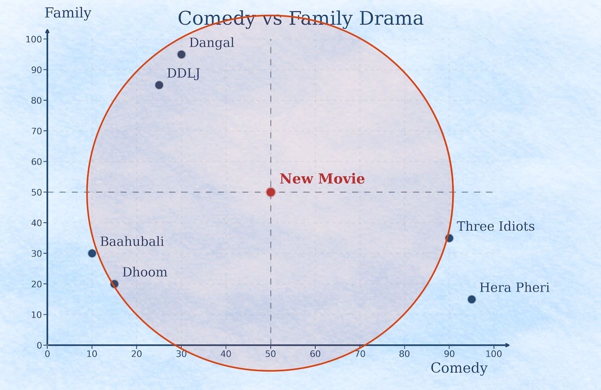 When the movie sits in the middle, the program can no longer decide by direct comparison. There is no single past movie that clearly matches it.