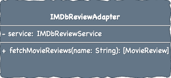 The client (the movie review app) calls fetchMovieReviews(movieName) and receives reviews in the MovieReview format it already understands â no extra work required.